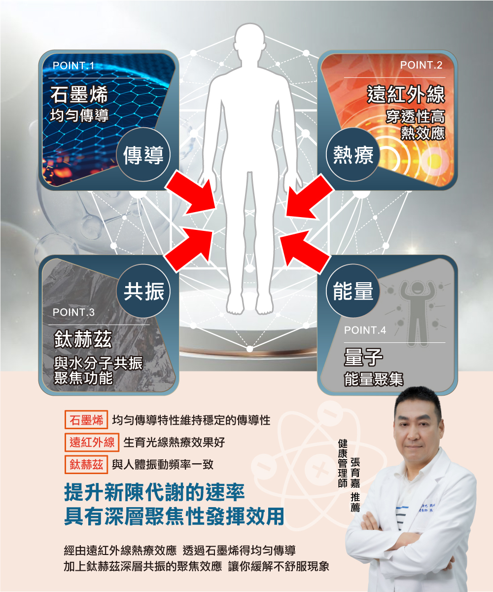 一般石墨烯產品只發遠紅外線,熱量頂多進皮膚1-2毫米;PA鈦赫茲超強,能直達4-5公分深!